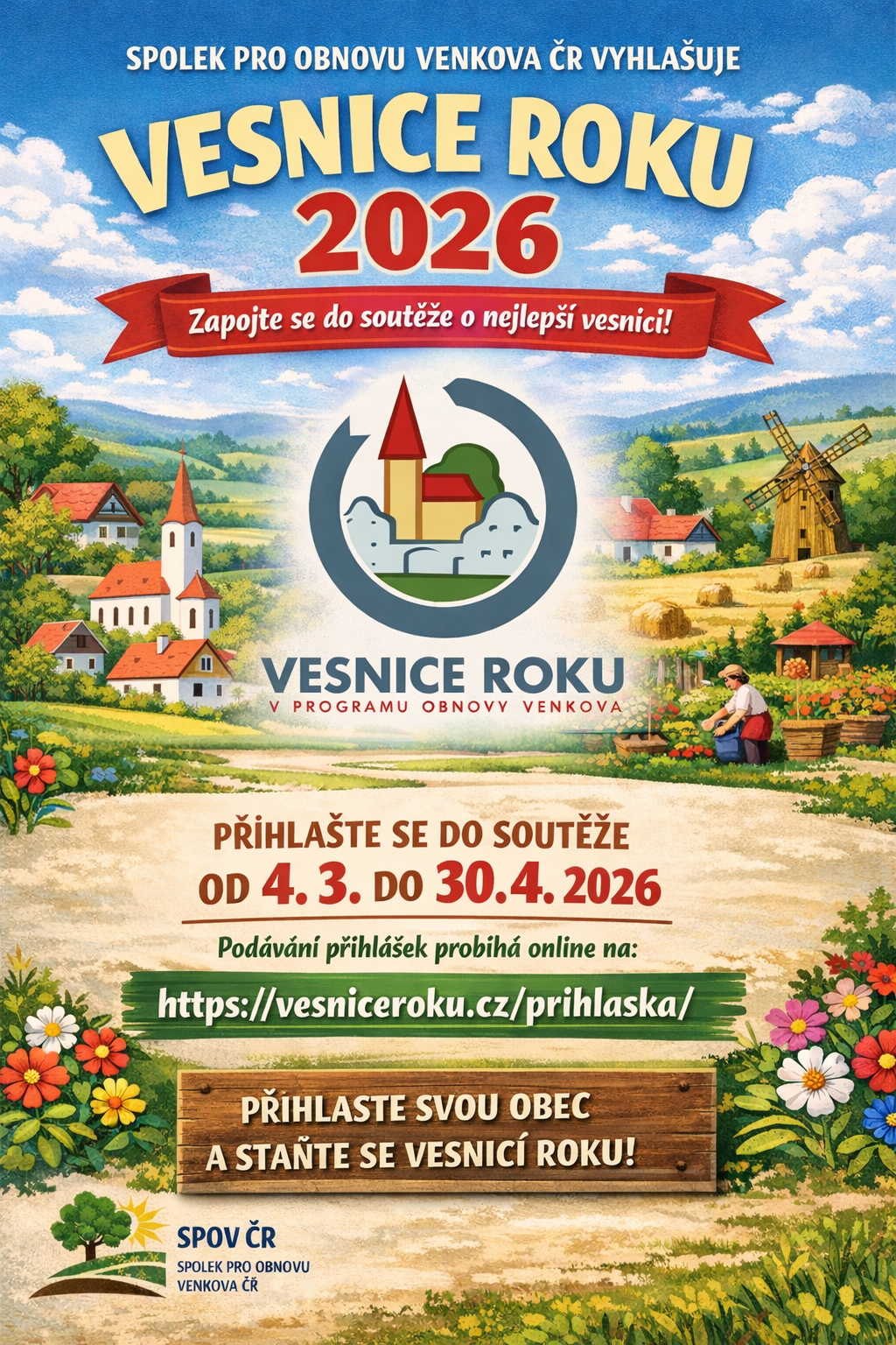 dne 12.3. 2026 se uskutečnil ve Vrbátkách - Dubanech motivační seminář k soutěži Vesnice roku 2026. Pokud jste neměli možnost se semináře osobně zúčastnit zasílám v přílohách prezentaci jednotlivých přednášejících pro Vaši inspiraci, a hlavně nabídky pro zaslání přihlášky do této prestižní soutěže.